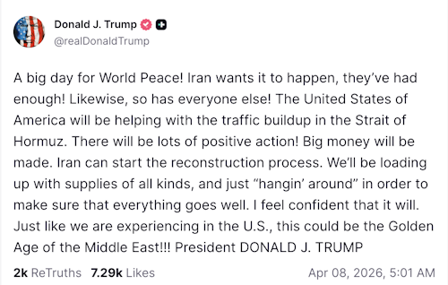 Ayer, 7 de abril, el presidente Donald Trump acordó un alto al fuego de dos semanas con Irán.