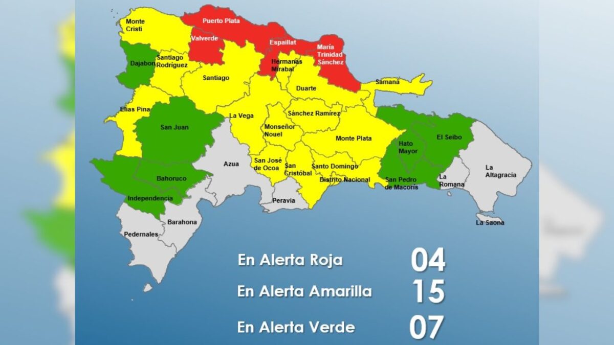 El COE indicó que, en cumplimiento de la Ley 147-02 sobre Gestión de Riesgos, se mantienen los niveles de alerta de la siguiente manera: