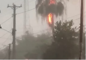 El siniestro ocurrió alrededor las 3:40 de la tarde de este jueves cuando una descarga eléctrica atmosférica cayó de forma directa sobre el árbol, generando el siniestro que alarmó a los residentes de launidades del Cuerpo de Bomberos de esa localidad.