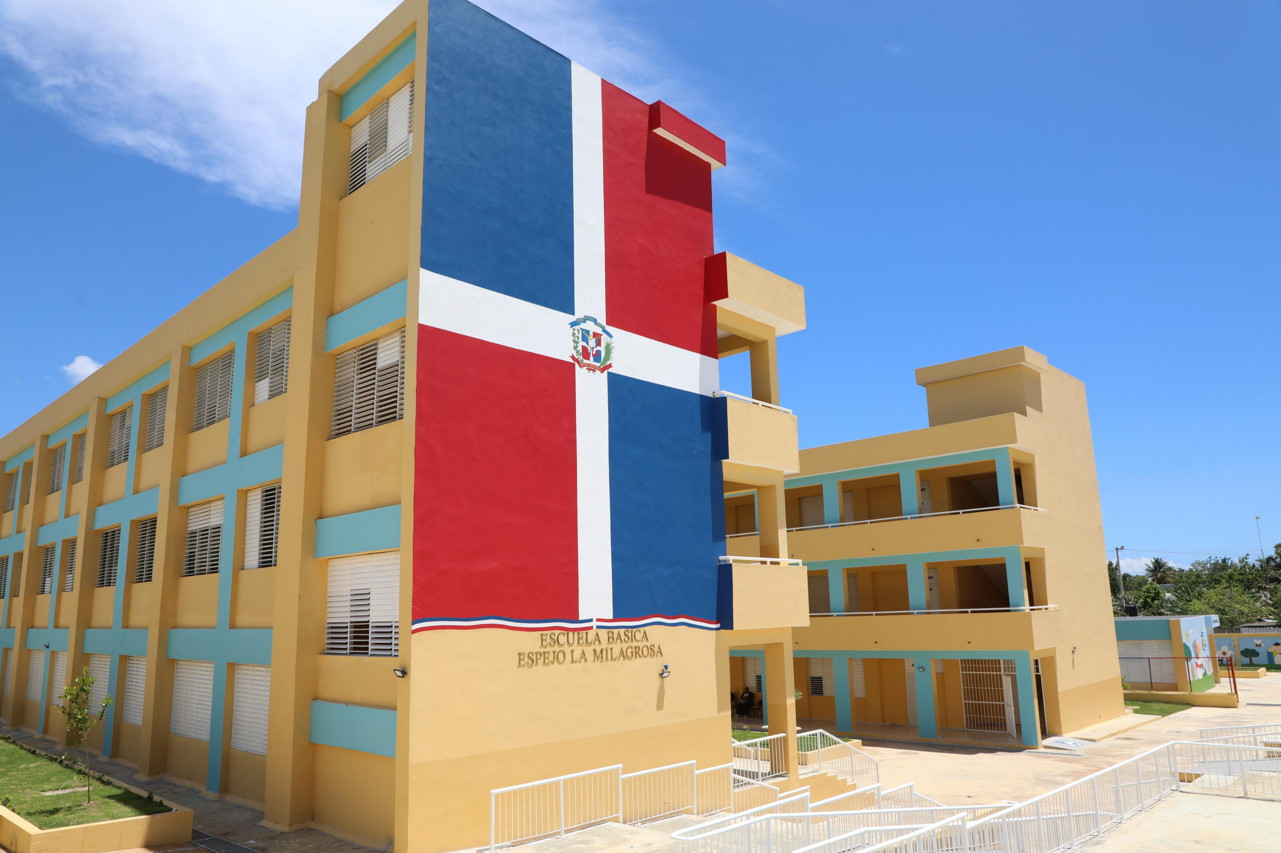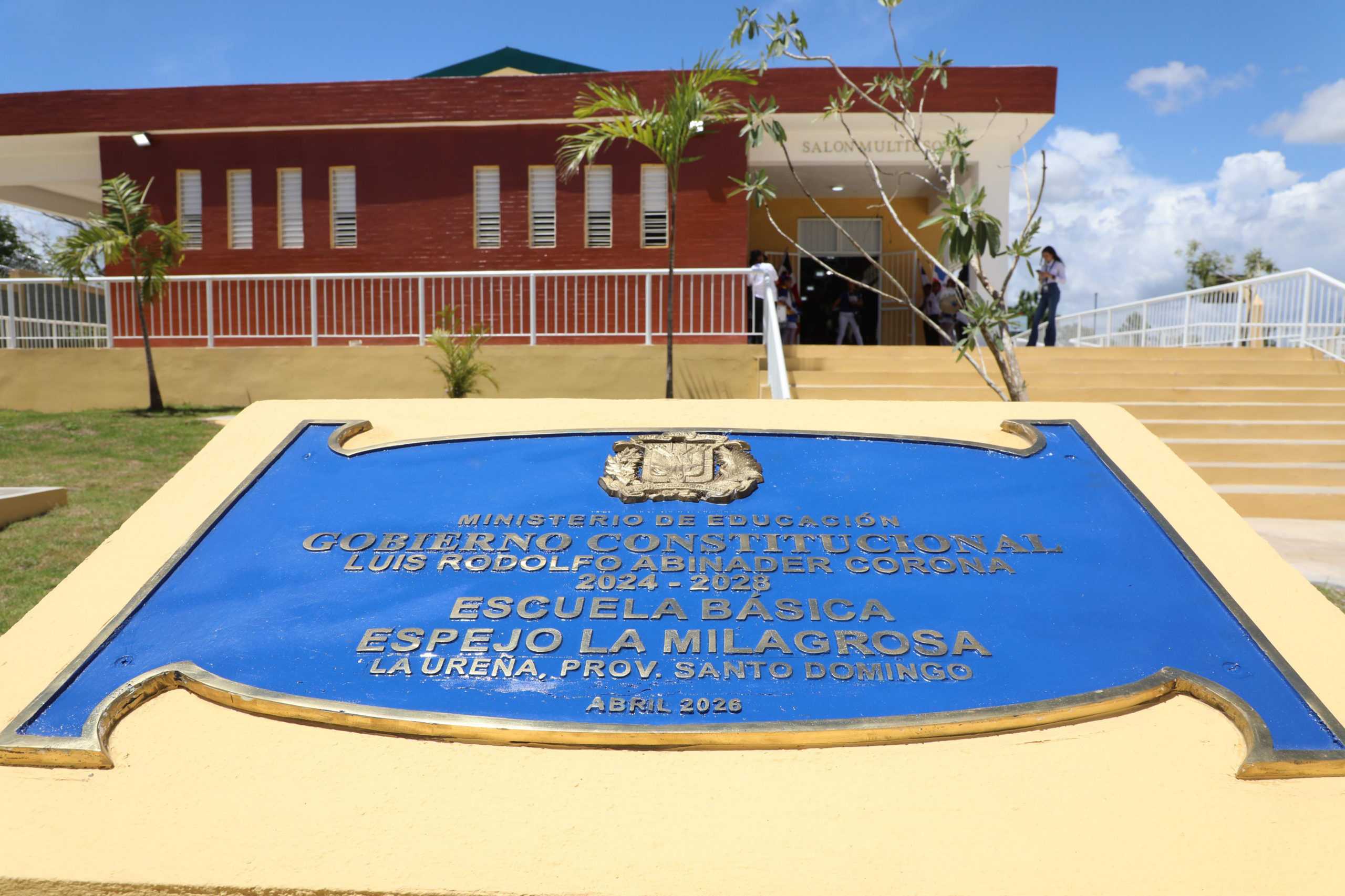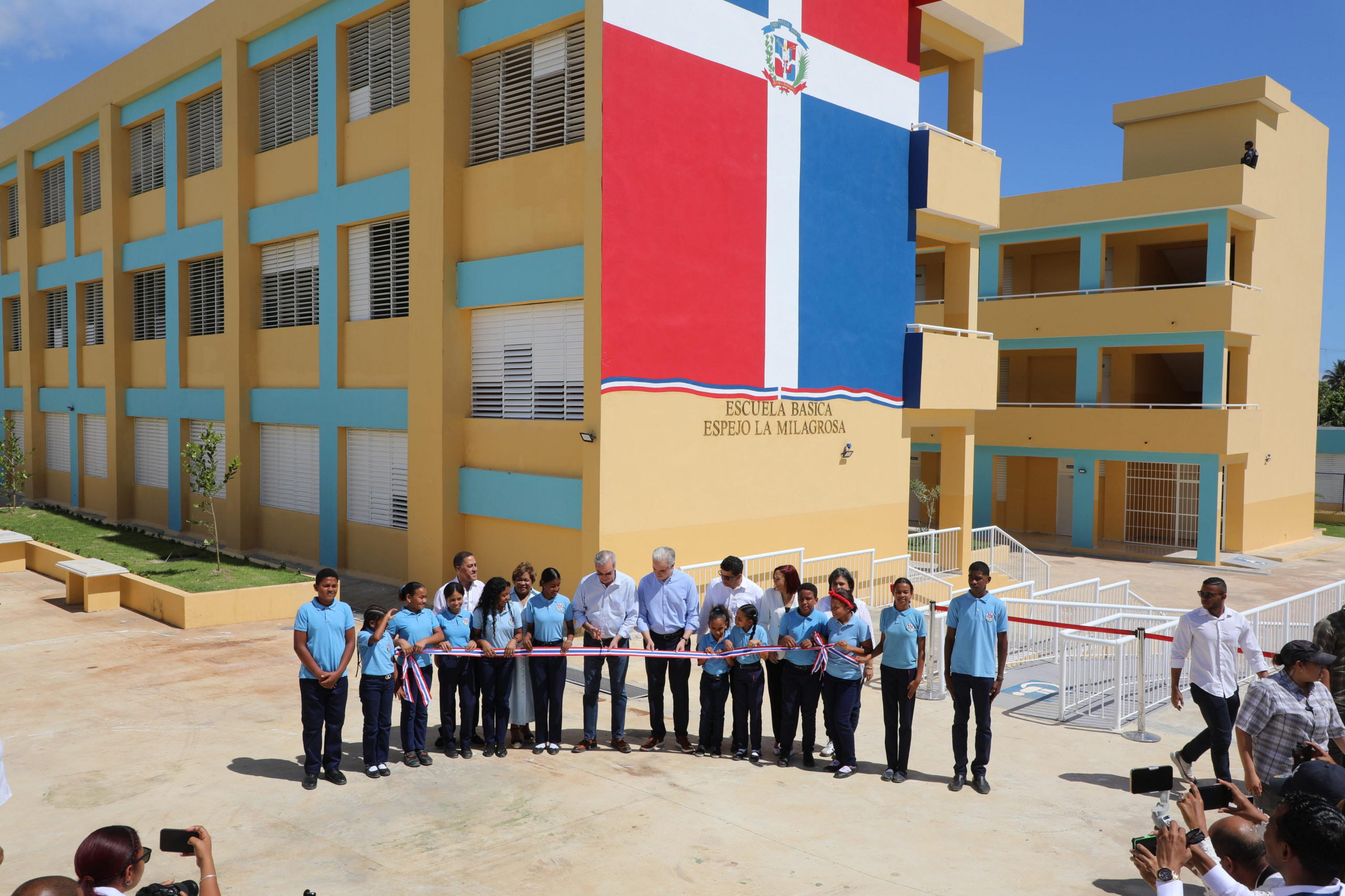 Santo Domingo. – El presidente Luis Abinader inauguró este domingo la Escuela Básica Espejo La Milagrosa, en el sector La Ureña, una obra educativa esperada por 14 años y que tendrá capacidad para 840 niños y niñas distribuidos en 24 aulas.