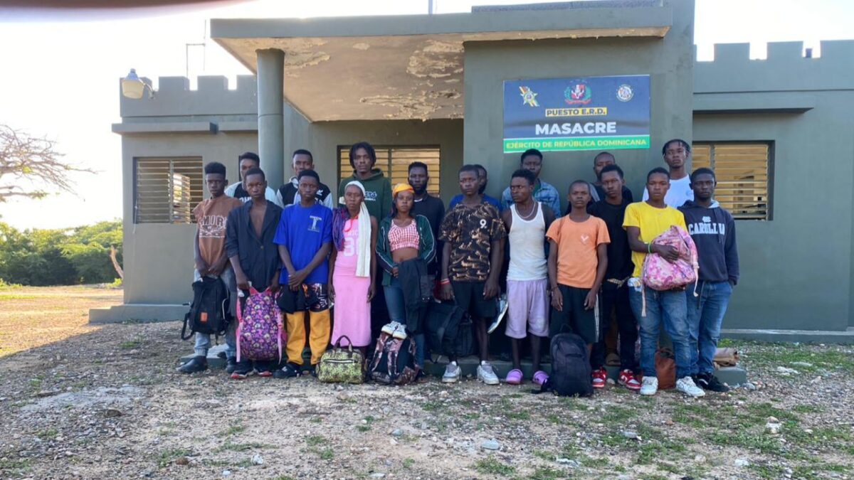 En un primer operativo, soldados adscritos al puesto de Masacre, perteneciente al 10mo. Batallón de Infantería, interceptaron a diecinueve (19) extranjeros, entre ellos 15 hombres, dos mujeres y dos menores de edad, quienes intentaban ingresar a territorio dominicano de manera irregular desde Haití.