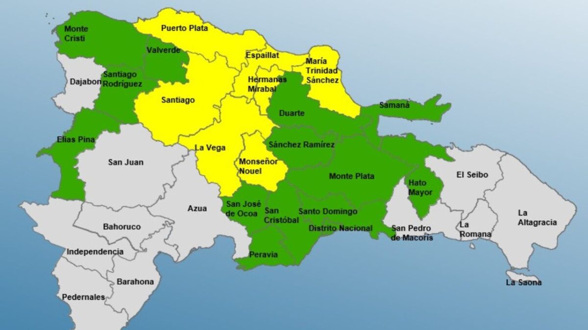 El COE informó que las provincias en alerta amarilla son Puerto Plata, Espaillat, María Trinidad Sánchez, Monseñor Nouel, La Vega, Santiago y Hermanas Mirabal.