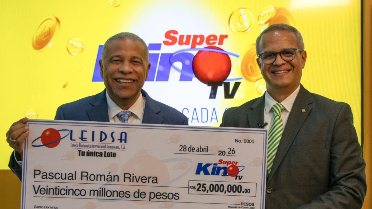 SANTO DOMINGO.- La Lotería Electrónica Internacional Dominicana (LEIDSA) informó que el señor Pascual Román Rivera recibió el premio de 25 millones de pesos del Súper Kino TV, correspondiente al sorteo del pasado jueves 9 de abril.