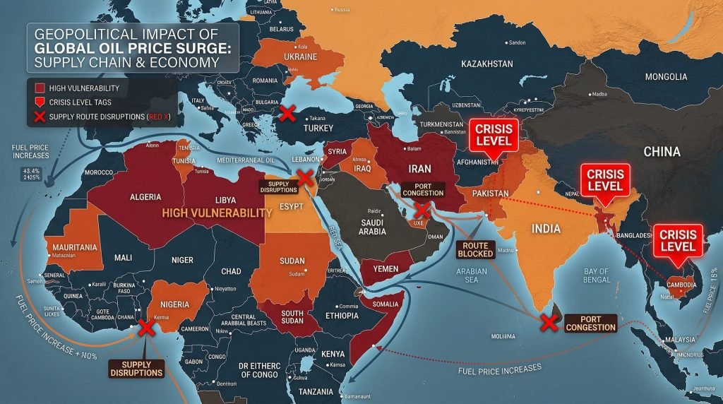 Según la Agencia Internacional de la Energía, esta situación representa la mayor interrupción del suministro en la historia del mercado petrolero mundial. El WTI superó los 106 dólares por barril, impulsado por la guerra en Oriente Medio y ha subido 53 % en marzo 2026. El precio del crudo Brent se disparó de 73 a 120 dólares en apenas diez días, tras el cierre del estrecho de Ormuz el 4 de marzo, con un volumen de ventas que superó los 10 millones de barriles diarios, evidenciando la magnitud del impacto global.