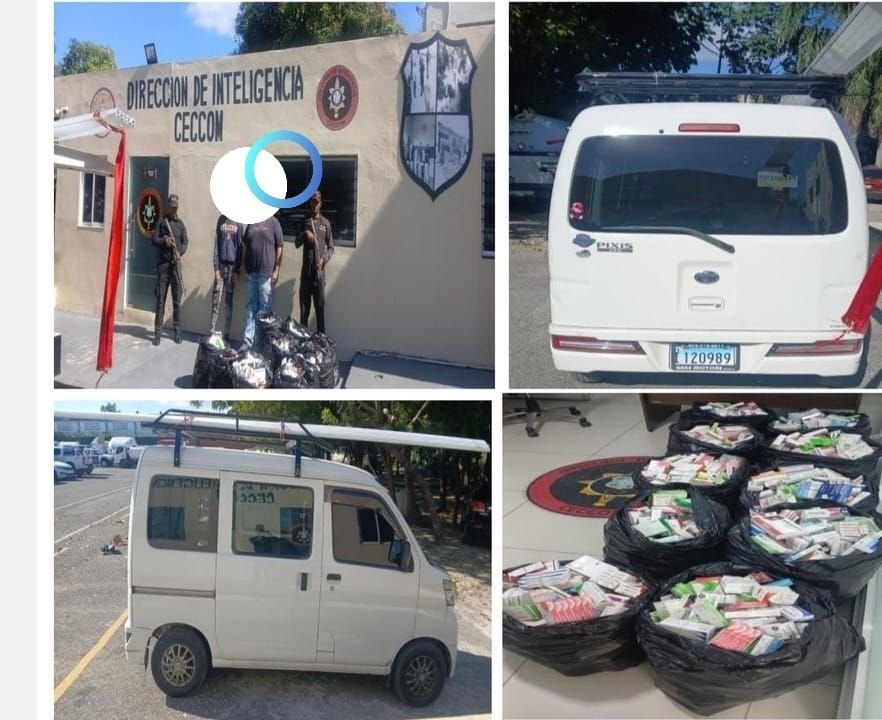 Durante la inspección, se encontraron en la parte trasera del vehículo varias fundas con una cantidad significativa de medicamentos de diferentes marcas, los cuales eran comercializados sin los permisos correspondientes. Este hecho constituye una violación a la Ley General de Salud No. 42-01 y a la Ley No. 17-19 sobre Erradicación del Comercio Ilícito, Contrabando y Falsificación de Productos Regulados, además de representar una evasión de impuestos al Estado Dominicano.