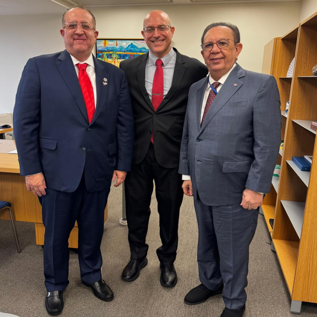 Washington D.C., Estados Unidos. El gobernador del Banco Central de la República Dominicana, Héctor Valdez Albizu, y el ministro de Hacienda y Economía (MHE), Magín Díaz, sostuvieron un encuentro bilateral con el señor André Roncaglia, director ejecutivo del Fondo Monetario Internacional (FMI) por Brasil y presidente de la constituyente de países a la cual pertenece la República Dominicana, en el marco del inicio de las Reuniones Anuales del FMI y del Banco Mundial de 2025.