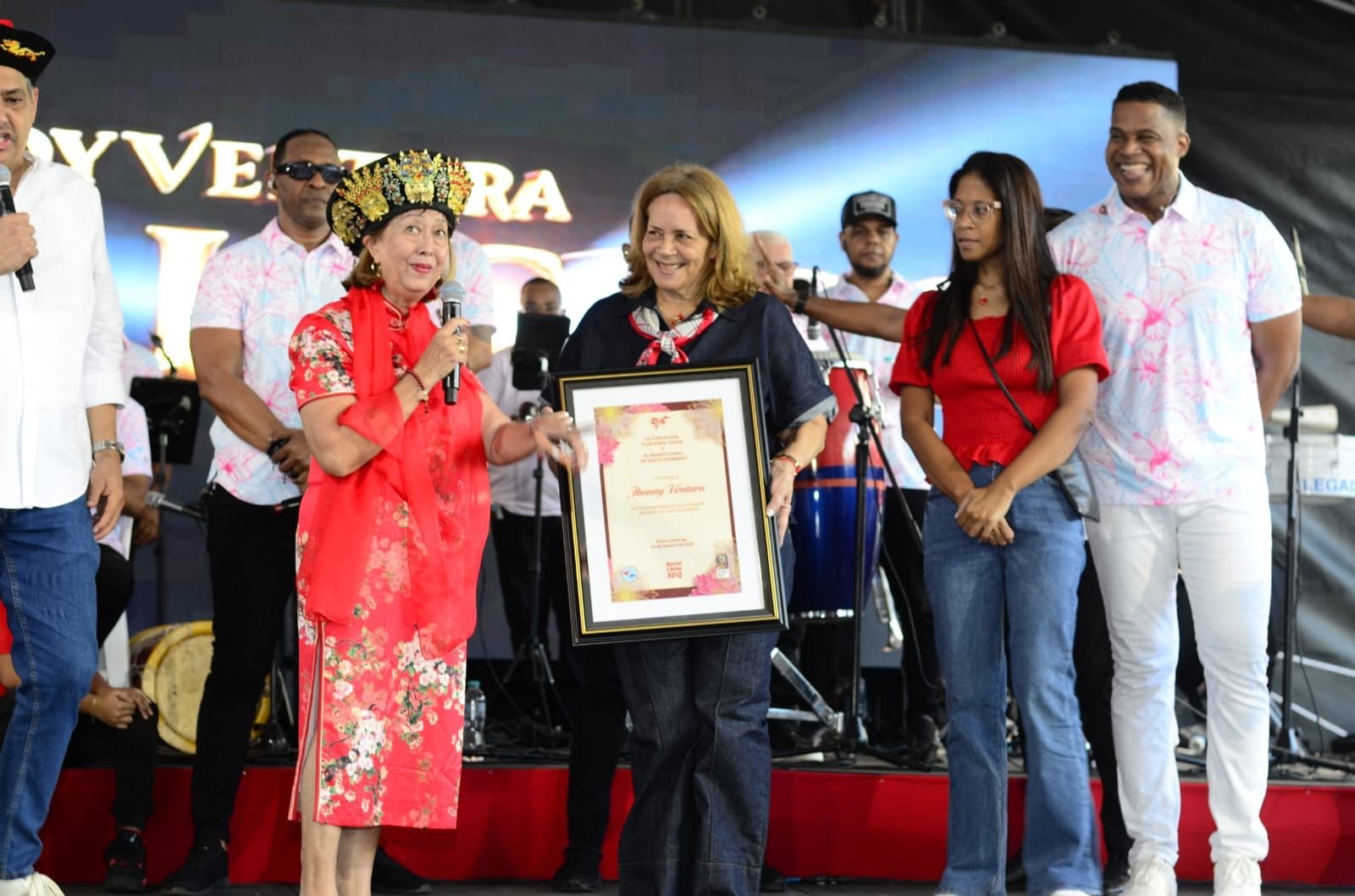 Como parte del homenaje, Rosa hizo entrega de un reconocimiento póstumo al legendario merenguero en nombre de la fundación y del Barrio Chino, el cual fue recibido por su esposa, Josefina Flores de Ventura “Fifa”, sus hijos Ana Yahaira y Jandy, en un momento cargado de emotividad y gratitud.