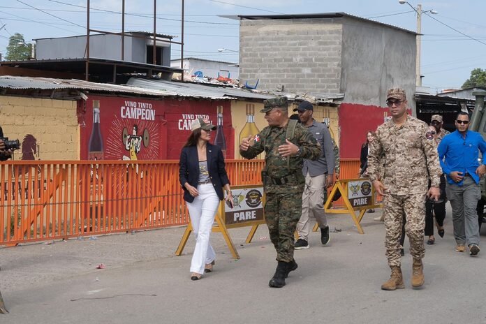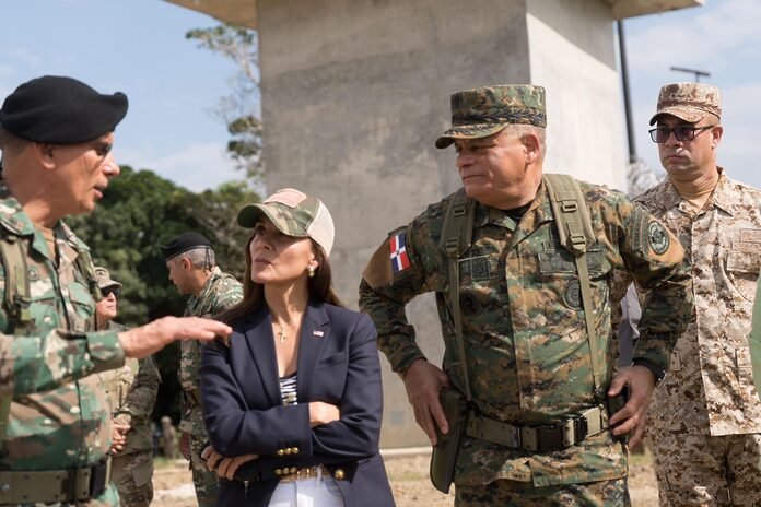 Dajabón, República Dominicana. — El ministro de Defensa, teniente general Carlos Antonio Fernández Onofre, ERD., realizó un recorrido estratégico por la zona fronteriza de Dajabón junto a la embajadora de los Estados Unidos en la República Dominicana, señora Leah Francis Campos, quien estuvo acompañada de una comitiva oficial, con el propósito de conocer de primera mano la dinámica operativa y de seguridad en esta importante área limítrofe.